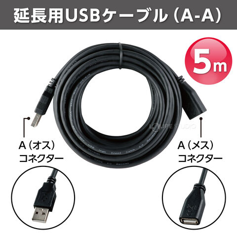 延長用USBケーブル[A-A]5m PC パソコン周辺機器 アクセサリー 延長コード ブラックスペック