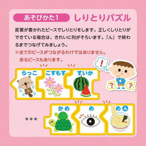 パズルdeしりとり 幼児 知育玩具 おもちゃ 室内 遊び カードゲーム かるた トランプ キッズ 子供 幼稚園 保育園 国語 日本語 言葉遊び 勉強 学習スペック