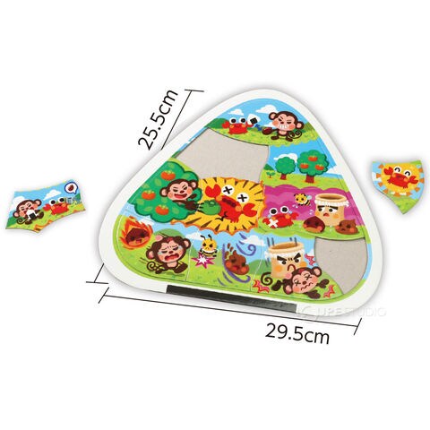さるかに合戦のお話が描かれたおにぎり型パズル!