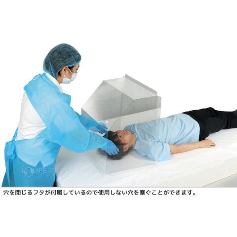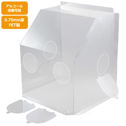 エアロゾルボックス 組立式 折りたたみ 飛沫感染 飛沫予防 ウイルス対策 使い捨て プラスチックボックス ウィルス 頭 顔 緊急 防災 穴付き パーテーションスペック