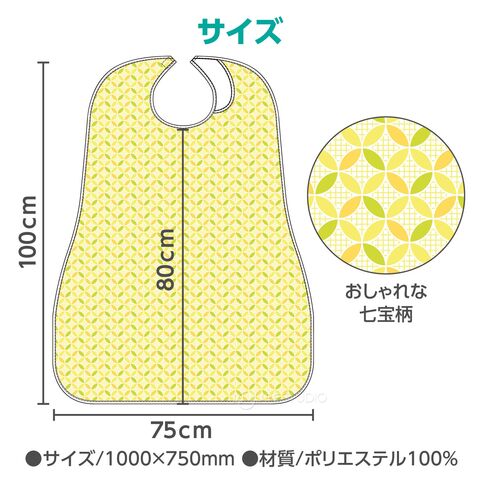 食事用エプロン 介護 食事 防水 洗濯可能 洗える 介護用品 食事用 業務用 食べこぼし ロングタイプ 便利グッズ 前掛け 七宝柄スペック