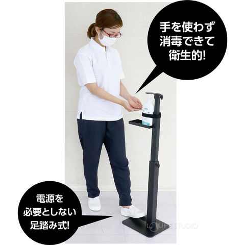 ペダル式消毒液スタンド 足踏み式 アルコール 消毒スプレースタンド 台 ブラック 黒 手指消毒 ウイルス対策 非接触 感染予防 ウィルス 消毒器