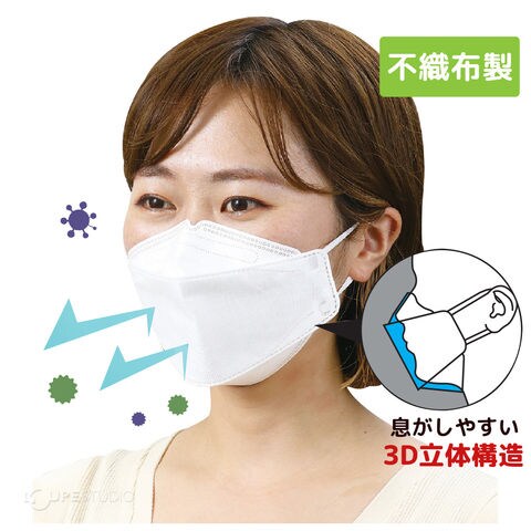 立体マスク 不織布 4層 50枚入 息がしやすい 息苦しくない 息楽 使い捨て 3dスペック