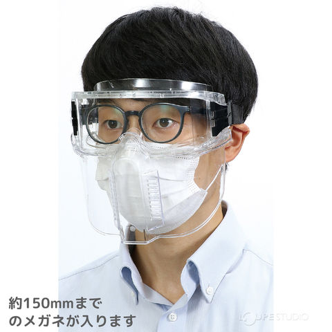 保護メガネ メガネの上から フルフェイス セーフティーゴーグル ウイルス対策 飛沫 感染 予防 ウィルス PM2.5 黄砂 フェイスシールド 透明 目立たない フェイスガードスペック
