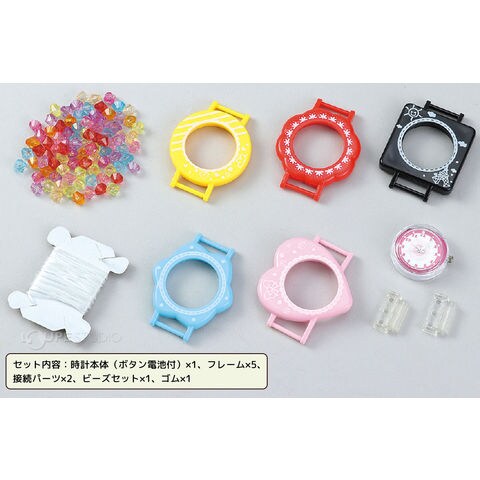 | セット内容 | 時計本体(ボタン電池付)×1、フレーム×5、接続パーツ×2、ビーズセット×1、ゴム×1 |