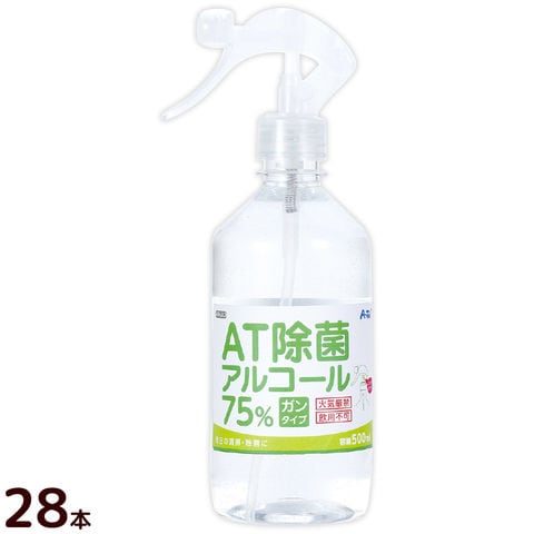 アルコール AT除菌75% アルコール 500ml ガンタイプx28本 除菌 クリアボトル スプレー エタノール 手指 清掃 ウイルス対策 感染 予防 衛生用品