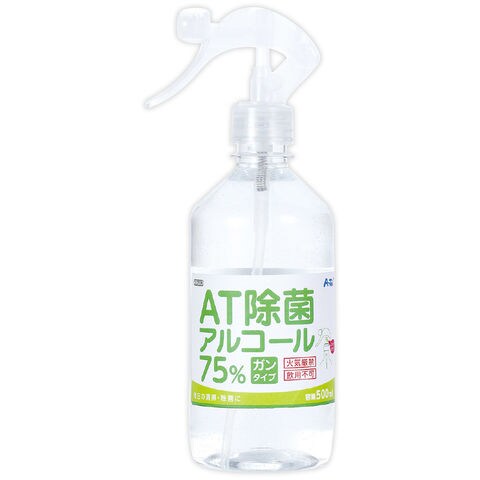アルコール AT除菌75% アルコール 500ml ガンタイプ 1本 除菌 クリアボトル スプレー エタノール 手指 清掃 ウイルス対策 感染 予防 衛生用品