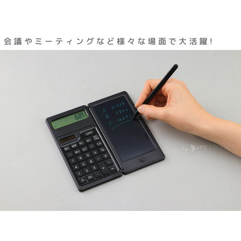電卓 ソーラー メモパッド 電子メモパッド メモ メモ帳 おすすめ オフィス 会議 ミーティング ソーラー電卓付き電子メモパッド 黒 ブラック