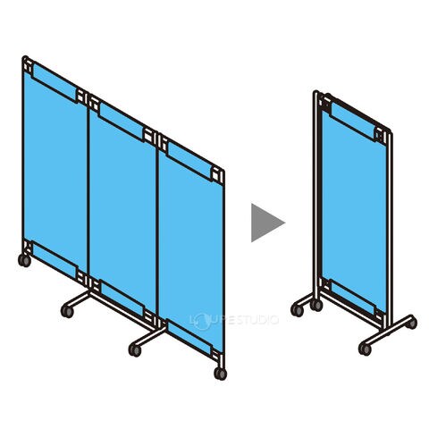 手軽に空間を仕切ることができるパーテーション。難燃性素材使用