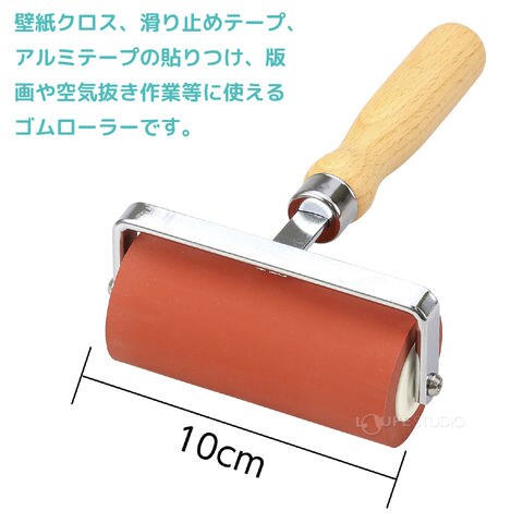 転圧ゴムローラー 赤 φ45×100mm[4インチ] 版画 小学生 図工 美術 壁紙貼り 滑り止めテープ貼り 版画用ローラースペック