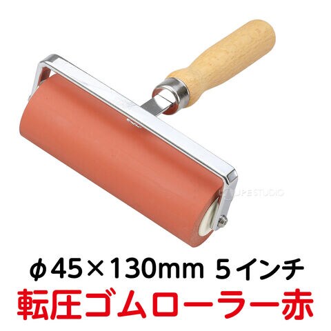 転圧ゴムローラー 赤 φ45×130mm[5インチ] 版画 小学生 図工 美術 壁紙貼り 滑り止めテープ貼り 版画用ローラー