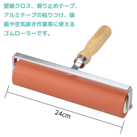 転圧ゴムローラー 赤 φ45×240mm[10インチ] 版画 小学生 図工 美術 壁紙貼り 滑り止めテープ貼り 版画用ローラー