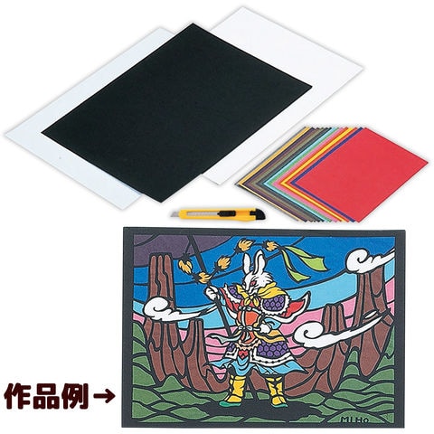 カッティング用黒台紙は切りやすい紙を使用!色紙は民芸調の和紙で趣のある作品に仕上がります。