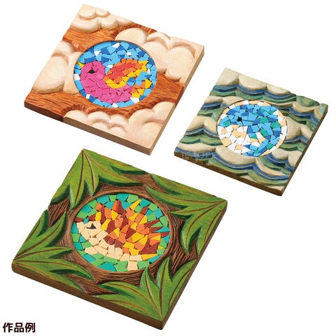 | 商品サイズ | 木彫コースター/100×100×10mm、プラモザイク小 12色組/50×50mm |