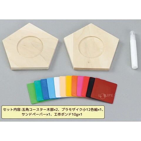 | セット内容 | 五角コースター木部×2、プラモザイク小12色組×1、サンドペーパー×1、工作ボンド10g×1 |