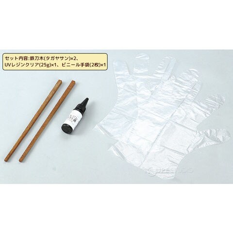 | セット内容 | 鉄刀木(タガヤサン)×2、UVレジンクリア(25g)×1、ビニール手袋(2枚)×1 |