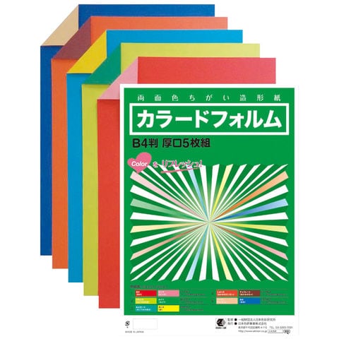 色画用紙 カラードフォルム B4 厚口 5枚組 工作 図工 美術 材料 素材 手作り 学校 教材 自由研究 宿題 子ども キッズ
