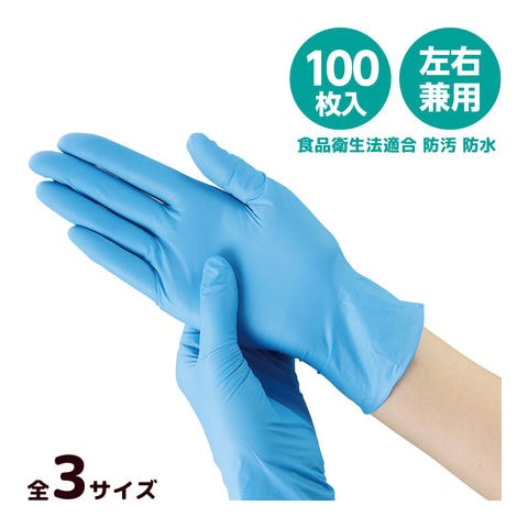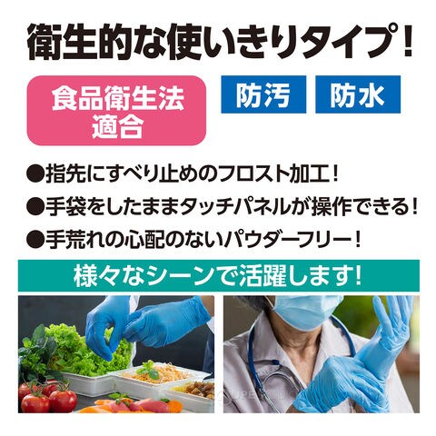 ATニトリルグローブ S 100枚入 青 手袋 パウダーフリー 使い切りタイプ 食品衛生法適合 防汚 防水 食品 加工 水産 農産 介護 台所 水事 工場スペック