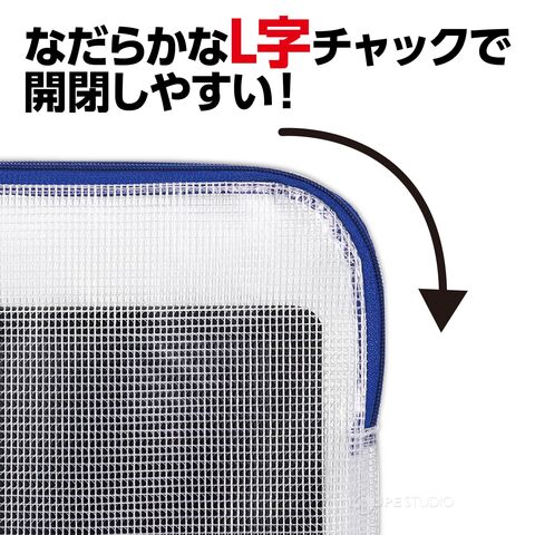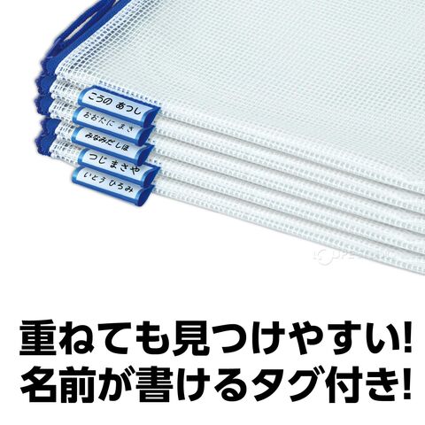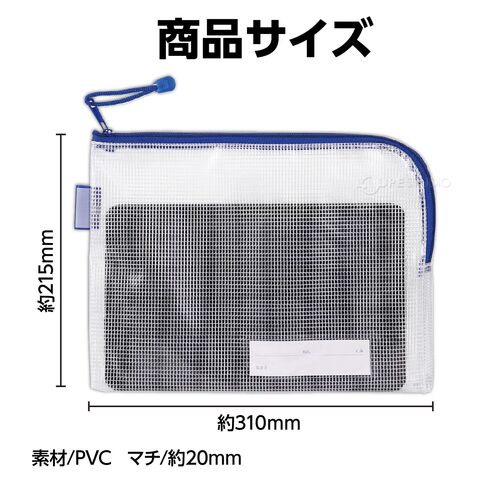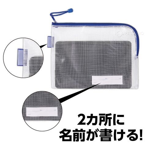 名前スペース、ネームタグ付きのPVC製ジッパー付きケースです。約2cmのマチがあるため、B5サイズのノートや書類が複数入ります。ペンや印鑑など文具類も入る持ち運びに便利なケースです。