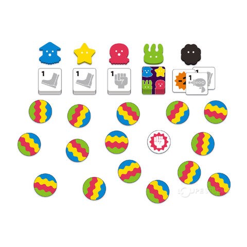 | セット内容 | エイリアンフィギュア(EVA)×5、攻撃カード×24、反撃カード×18、イベントカード×6、タイル×14、白旗タイル×4、説明書×1 |