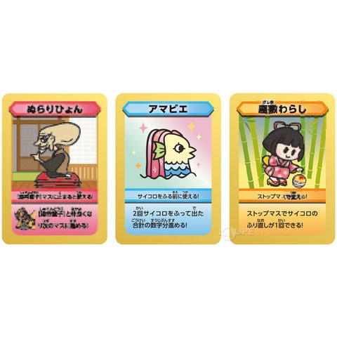 | 商品サイズ | すごろくシート/310×310mm ようかいカード/70×47mm コマ/φ16×30mm サイコロ/10×10×10mm |