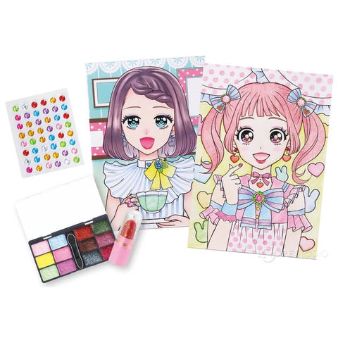 メイクパレット&リップスティック付宝石シール付ぬりえ台紙16枚