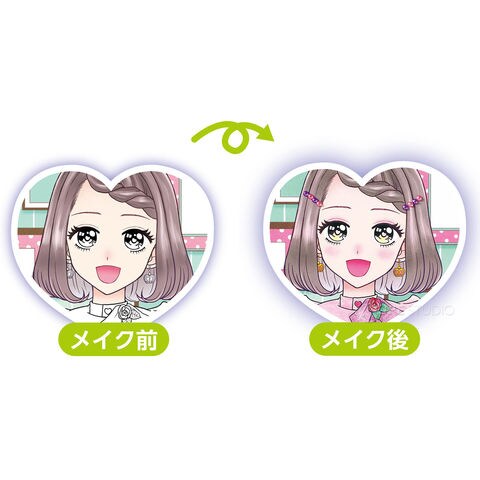 | 商品サイズ | ぬりえ台紙/210×148mm メイクパレット/55×102mm リップスティック/40×φ12mm 宝石シールシート/51×41mm(宝石シール1個/φ4×1.49mm) |