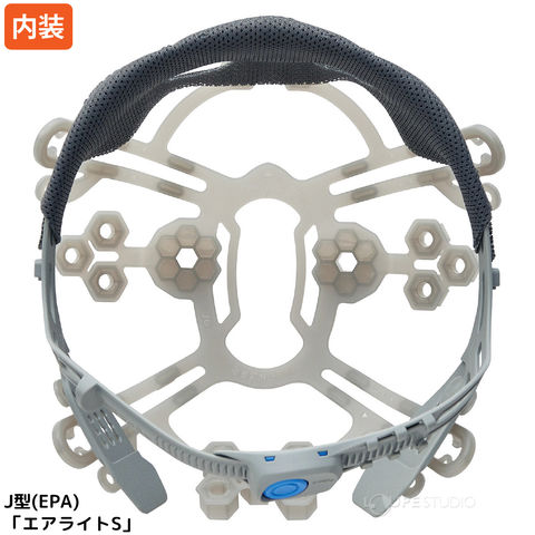 内装ハンモックの頭頂部2ヵ所に配置されたハニカム構造が飛来落下物の衝撃時に帽体を支えた後、帽体が衝撃を吸収します