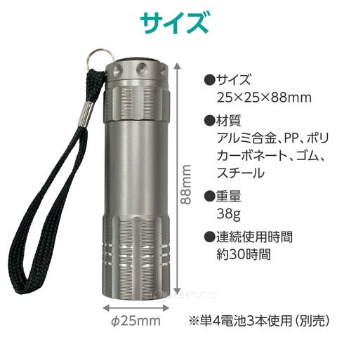 LEDライト 小型 電池 防犯 防災用品 地震 災害 停電 夜間 ハンディライト ランチャーライト 単4スペック