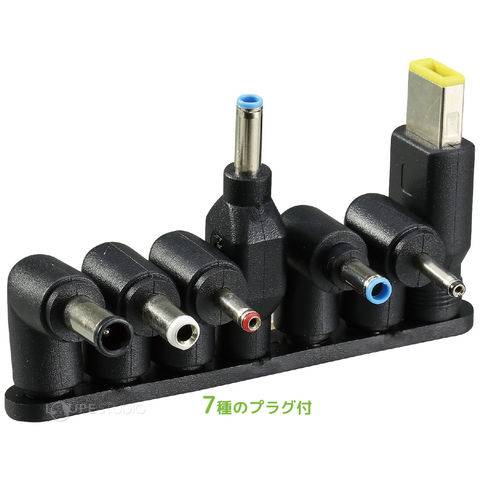 各社ノートパソコンに対応した7種類のプラグ付きのACアダプター