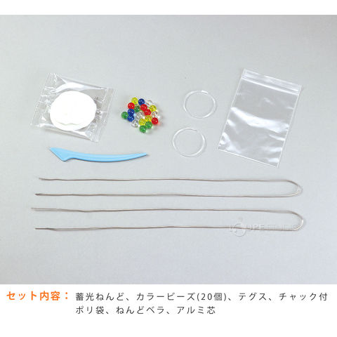 | セット内容 | 蓄光ねんど、カラービーズ(20個)、テグス、チャック付ポリ袋、ねんどベラ、アルミ芯 |