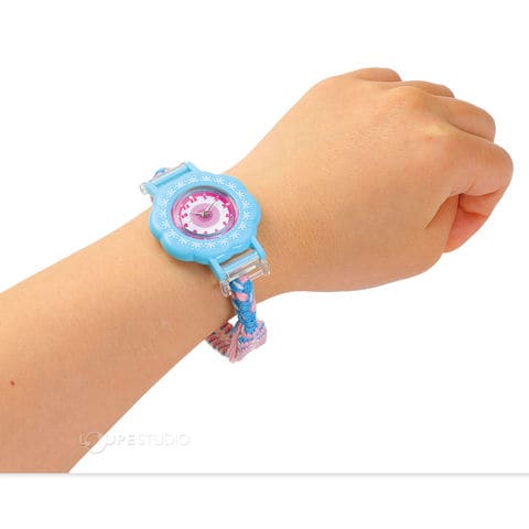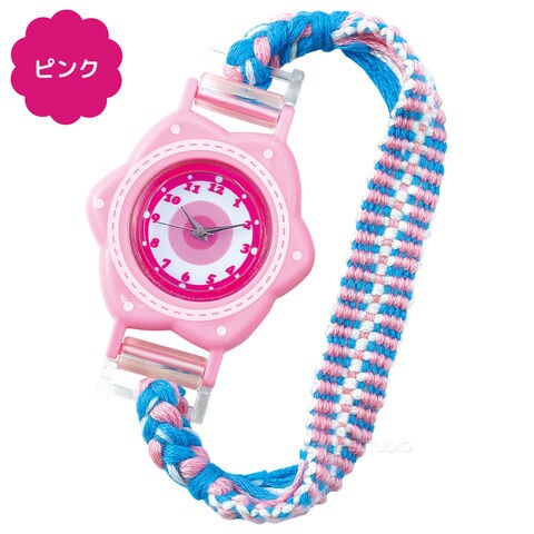 ミサンガを編んで自分だけのカラフルな腕時計を作ろう!はじめてでも簡単にミサンガがつくれるプレート付き。5種類の着せ替えフレーム付き!