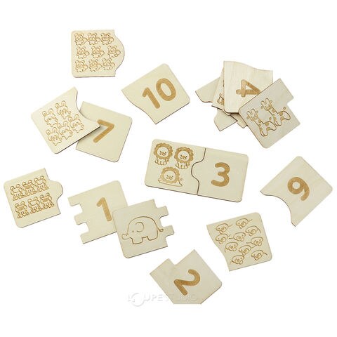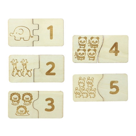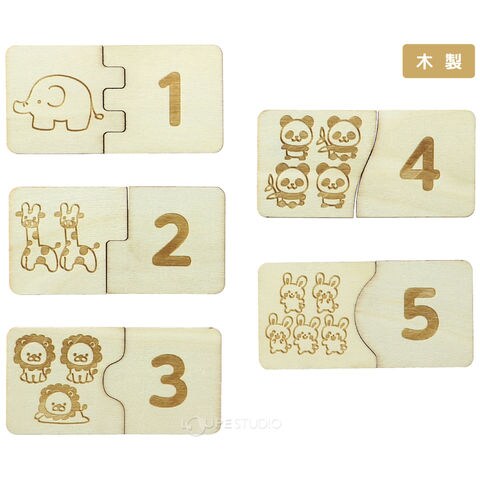 動物のイラストと数字を組み合わせる木製のパズルです。楽しく数字が学べます。