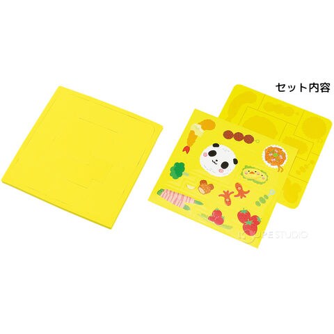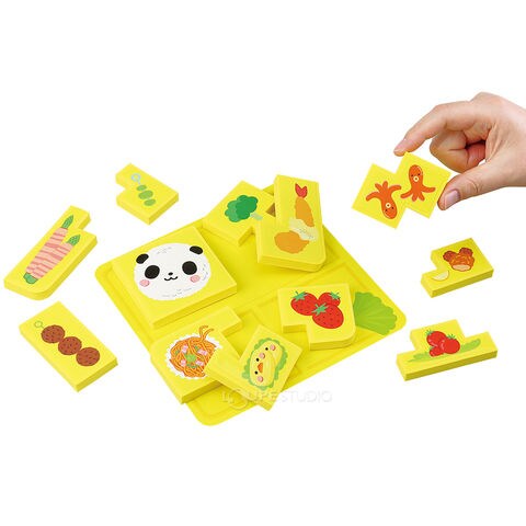 お弁当の具イラストが印刷されたEVA製のパズル。付属の台紙でお弁当作り遊びもできる。