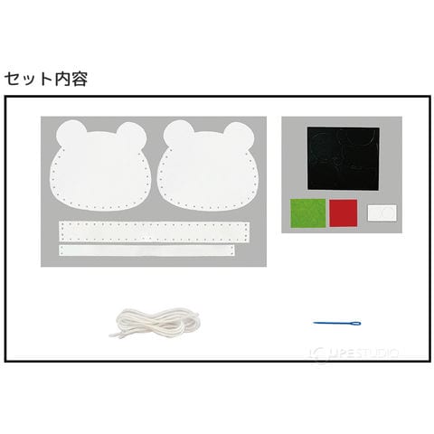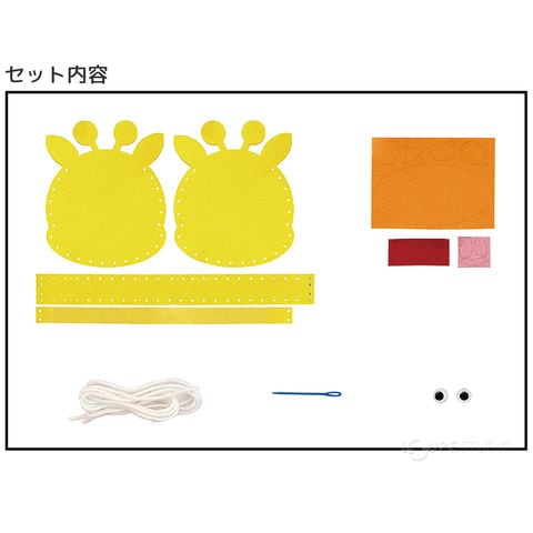| セット内容 | フェルト×3種、フェルトシール×3種、毛糸×1、針×1、目玉シール×2 |