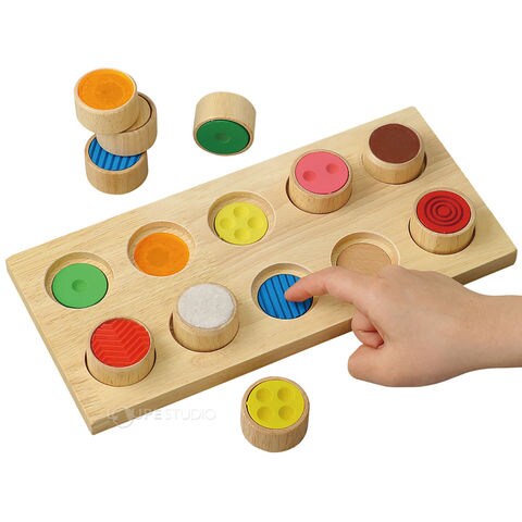 指先の感覚でペアを見つけて遊ぶ木製玩具