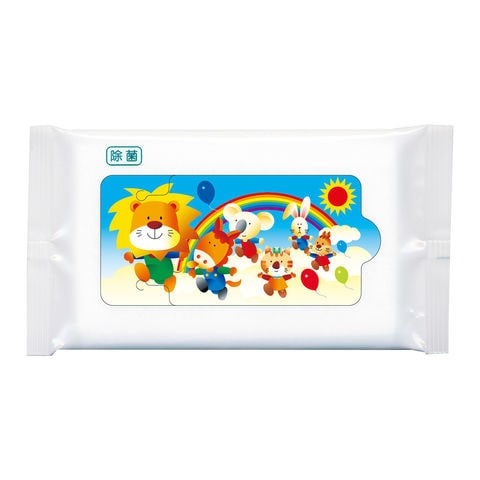 お出かけ柄のかわいい除菌ウェットシートです。