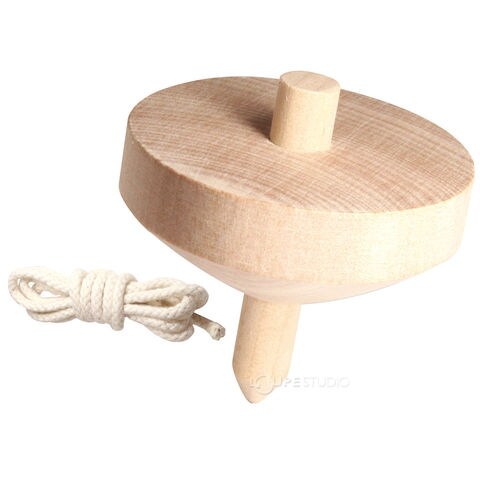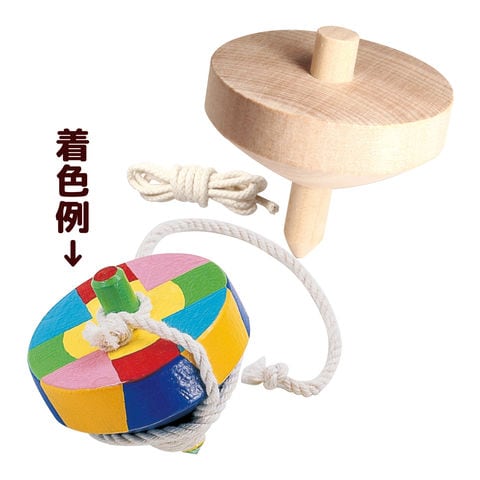 木製ゴマ 工作 図工 手作り おもちゃ 子供 知育玩具 手作り お正月 オリジナル ヒモ付 無着色 φ70