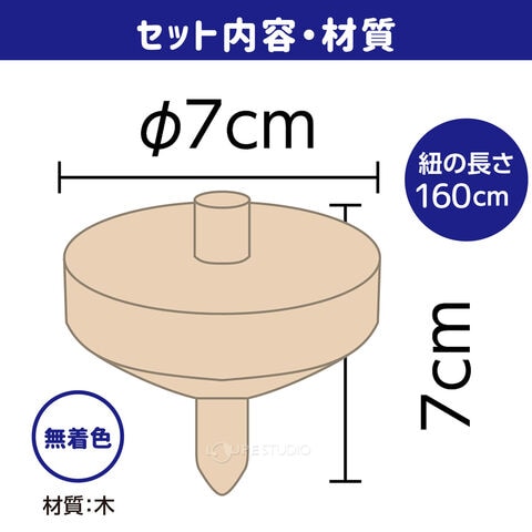 木製ゴマ 工作 図工 手作り おもちゃ 子供 知育玩具 手作り お正月 オリジナル ヒモ付 無着色 φ70スペック