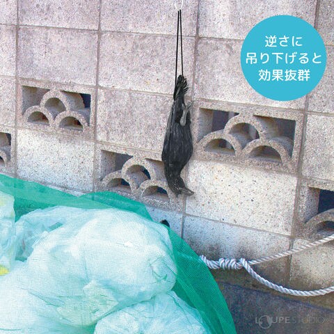 吊るすだけで害鳥被害を減らす!本物そっくりな吊り下げカラス使用場所:ゴミ置き場、畑、ベランダ、庭、店頭、駐車場など。