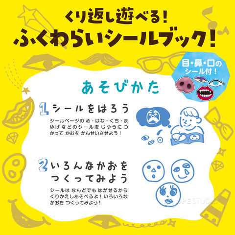 シール 絵本 子供 幼児 知育 3歳 おもちゃ ふくわらい 室内 遊び 幼稚園 保育園 かおシールブック3冊セットスペック