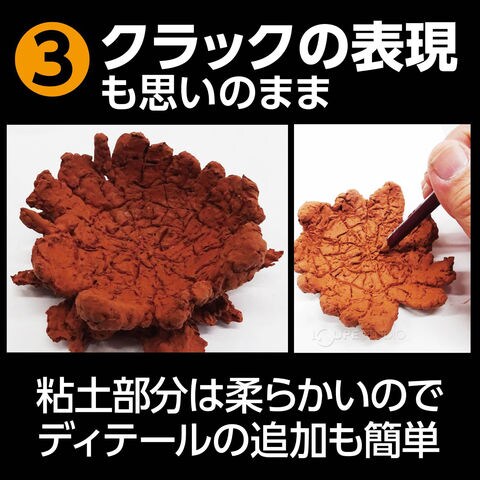 クラックの表現、混色、塗装も思いのまま粘土部分は柔らかいのでディテールの追加も簡単