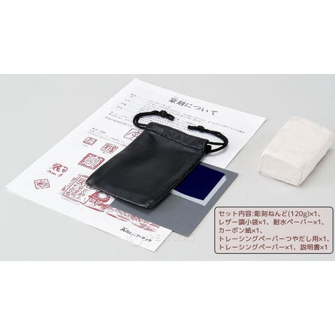 | セット内容 | 彫刻ねんど(120g)×1、レザー調小袋×1、耐水ペーパー×1、カーボン紙×1、トレーシングペーパーつやだし用×1、トレーシングペーパー×1、説明書×1 |