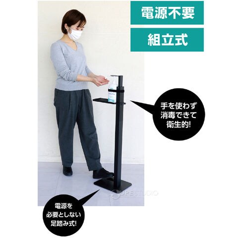 消毒 スタンド 足踏み式消毒スプレースタンド ブラック 軽量 手 清潔 病院 学校 施設 ウィルス対策 感染予防 衛生用品 持ち運びスペック