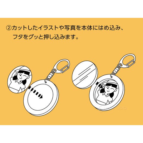 好きなカードやカットした写真などを入れてキーホルダーにできます