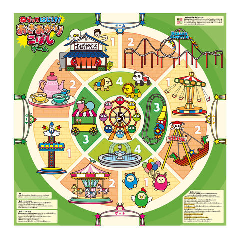 シールで飾った起き上がりこぼしをはじいて遊ぶゲーム