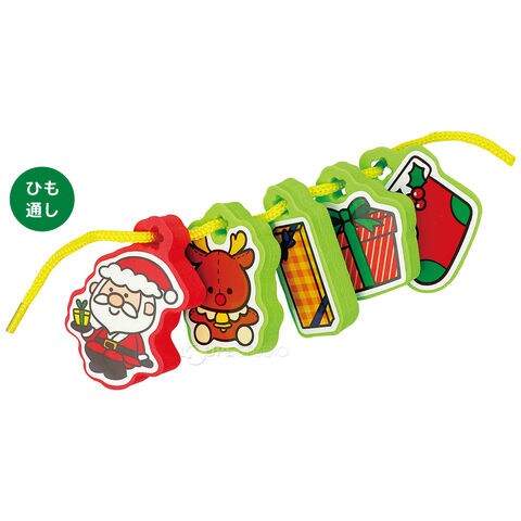 ソリにプレゼントを置いてサンタさんのお手伝いをしよう!紐通しもできる