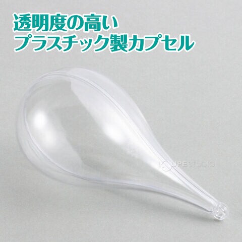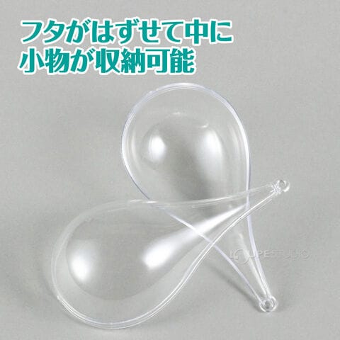 好きなマスコットやビーズ、ぬいぐるみなどを入れて飾ることができる透明カプセルです。かわいいしずく形です。ホルダー付きなのでチェーンなどを通すとキーホルダーにすることもできます。クリスマスツリーなどの飾り付けにも最適です。