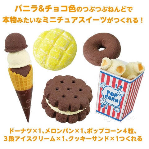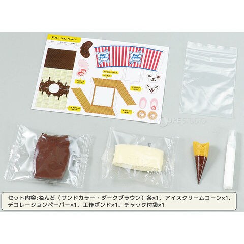 | セット内容 | ねんど(サンドカラー・ダークブラウン)各×1、アイスクリームコーン×1、デコレーションペーパー×1、工作ボンド×1、チャック付袋×1 |