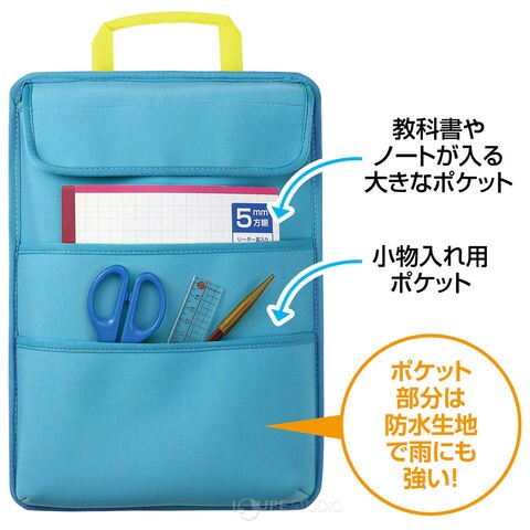 教科書やノートが入る大きなポケットと便利な小物入れ用ポケットがついてるので使いやすい。
